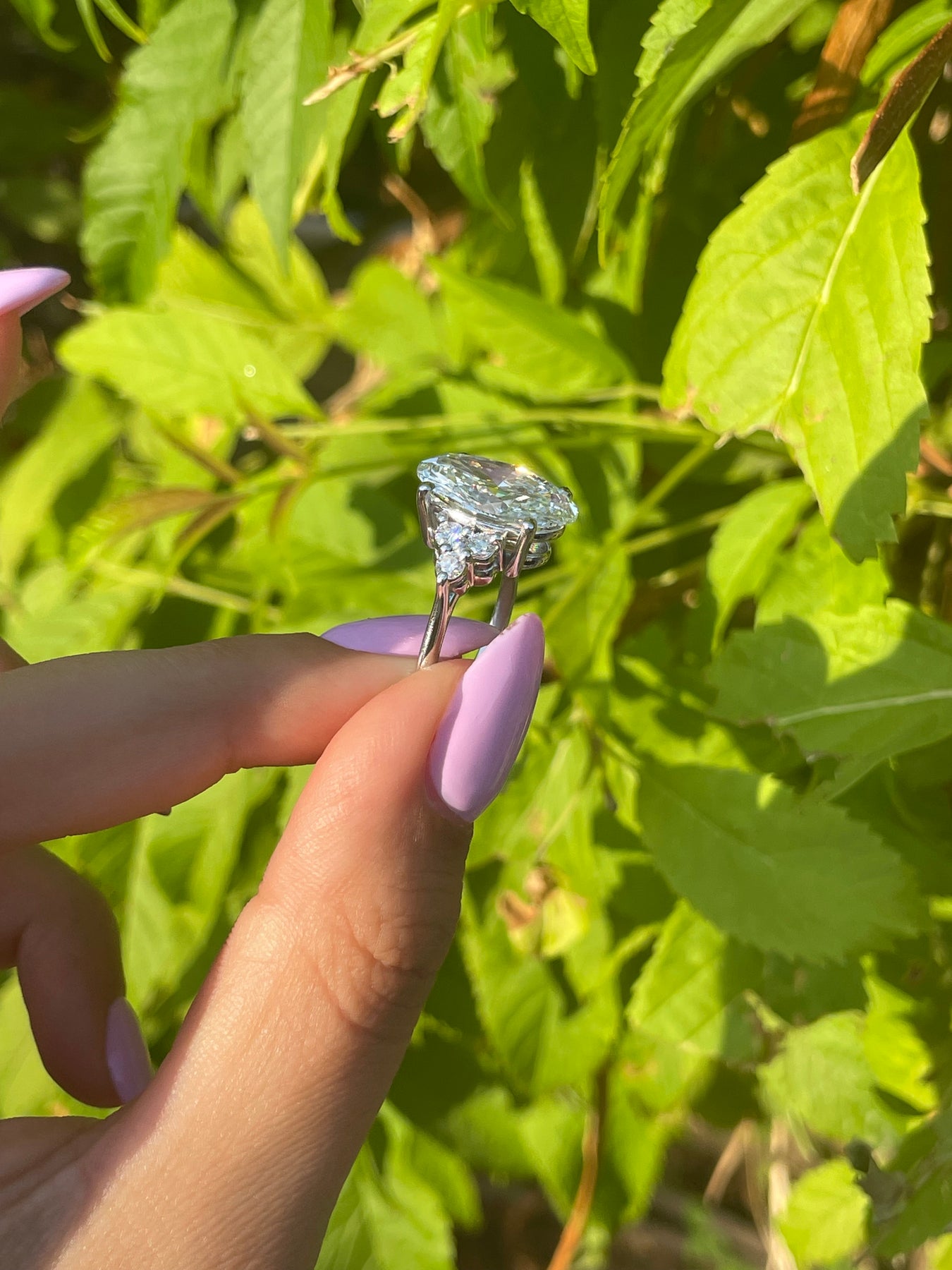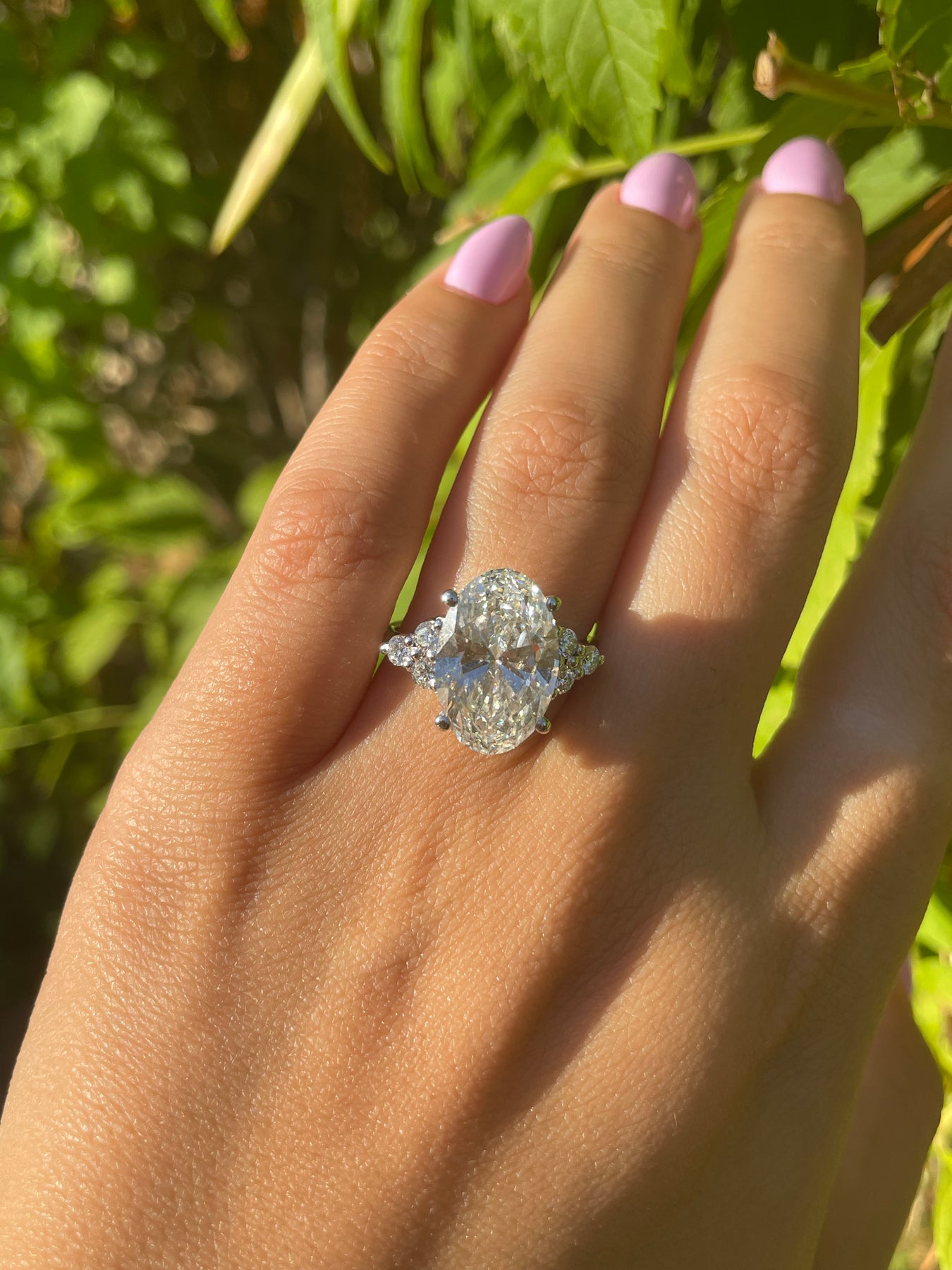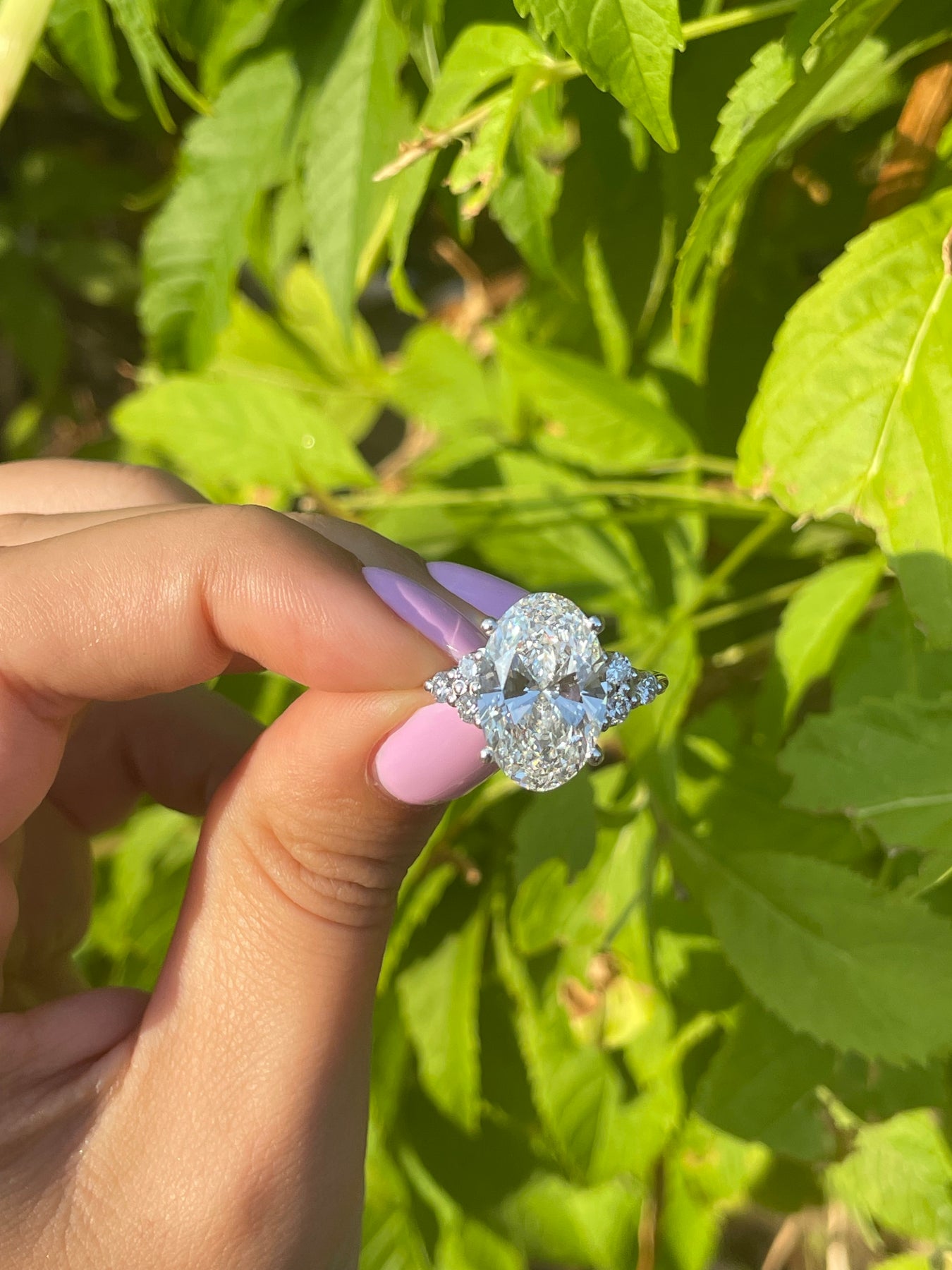 טבעת מרהיבה ביותר אלגנטית ויוקרתית המשלבת יהלום אובל ויהלומים קטנים בצדדים המשלימים יוקרה וסטייל