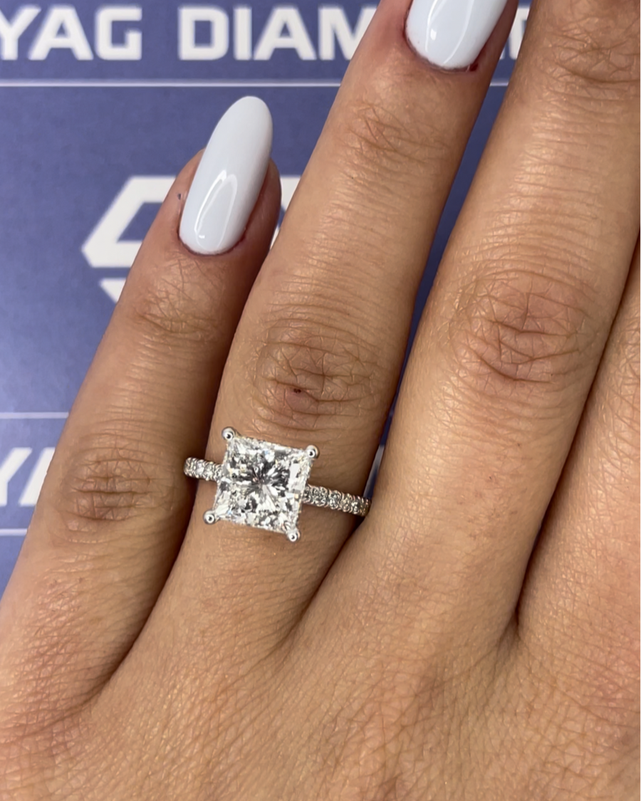 טבעת אירוסין קלאסית פרינסס משובצת יהלומי צד 2.30 קראט טבעי